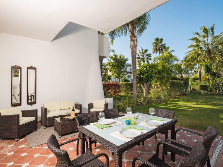 Groot, gezellige twee onder één kap woning "Perla Blanca". 250 m van zee, aan een doodlopende weg, op het westen. Voor medegebruik: mooie, verzorgde tuin met gazon en planten, openluchtzwembad rond omheind (seizoensgebonden beschikbaarheid: 01.Jul. - 31.Aug. openingstijden zwembad: 12:00-20:00). Voor alleengebruik: tuin met gazon 50 m2. Terras, tuinmeubelen. In het huis: wasmachine, droger. Eigen garage bij het huis. Supermarkt 1 km, restaurant 250 m, bushalte "Gran Hotel Playabella 4105" 650 m, zandstrand "Playa del Saladillo" 250 m. Jachthaven 8 km, golfterrein (18 holes) 2 km. Attracties in de buurt: Puerto Banus 7 km, Puerto Deportivo de Estepona 8 km. Het objekt is geschikt voor 6 volwassenen. De eigenaar accepteert geen groepen. De eigenaar accepteert geen jeugdgroepen. Vliegveld in de buurt 70 km van het huis. De omgeving is gevoelig voor geluidsoverlast. Gelieve geen lawaai te maken en de rust te bewaren.
