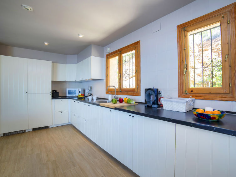 "Otra Vida", villa 7-kamers 370 m2 op 2 verdiepingen. Ruim en licht, comfortabel en mooi ingericht: groot, open woon-/eetkamer met Sat-TV, air-conditioning, ventilator en heteluchtverwarming. Uitgang naar het terras. 1 kamer met 1 2-pers bed (1 x 180 cm, lengte 200 cm), douche/WC, air-conditioning en heteluchtverwarming. 2 kamers, elke kamer heeft 1 2-pers bed (1 x 180 cm, lengte 200 cm), air-conditioning en heteluchtverwarming. Open keuken (oven, afwasmachine, 4 keramische glas kookplaten, broodrooster, waterkoker, magnetron, elektrische koffiemachine). Douche/WC. Souterrain: 1 kamer met 1 2-pers bed (1 x 140 cm, lengte 200 cm), douche/WC, air-conditioning en heteluchtverwarming. 1 kamer met 1 2-pers bed (1 x 180 cm, lengte 200 cm), air-conditioning en heteluchtverwarming. Uitgang naar het terras. 2 groot terrassen. Terrasmeubelen, barbecue, ligstoelen, zitgelegenheid. Panoramazicht op zee en de plaats. Ter beschikking: wasmachine, strijkijzer, haardroger. Internet (WiFi, gratis). Parkeerplaats. Rookvrij huis. CV-VUT0516604-A // Reg. Nr.: ESFCTU0000030530001734790000000000000CV-VUT0516604-A1