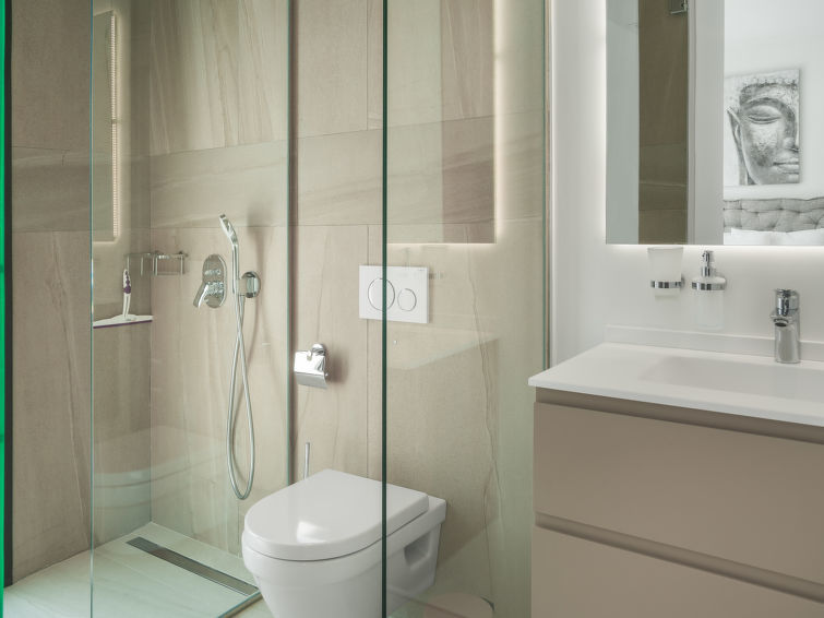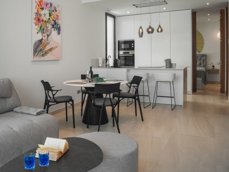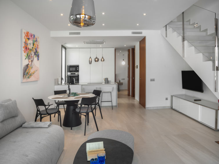 "Bruselas", huis in een rij 4-kamers 102 m2 op 2 verdiepingen. Het objekt is geschikt voor 6 volwassenen. Ruim en licht, comfortabel en smaakvol ingericht: woon-/eetkamer met Digitale TV, air-conditioning en heteluchtverwarming. Uitgang naar de tuin, naar het zwembad. 1 kamer met 1 2-pers bed (150 cm, lengte 190 cm), air-conditioning en heteluchtverwarming. Kookhoek (oven, afwasmachine, 3 keramische glas kookplaten, broodrooster, waterkoker, magnetron, diepvriezer, elektrische koffiemachine). Douche/WC. Air-conditioning. Bovenverdieping: 1 kamer met 1 2-pers bed (135 cm, lengte 190 cm), douche/WC, air-conditioning en heteluchtverwarming. 1 kamer met 1 2-pers bed (135 cm, lengte 190 cm), douche/WC, air-conditioning en heteluchtverwarming. Groot terras 20 m2. Terrasmeubelen, ligstoelen. Uitzicht in de verte op zee, het zwembad, de tuin en het landschap. Ter beschikking: wasmachine, strijkijzer, kinderstoel, kinderbed tot 2 jaar, haardroger. Internet (Internet (WiFi)). VT-487050-A