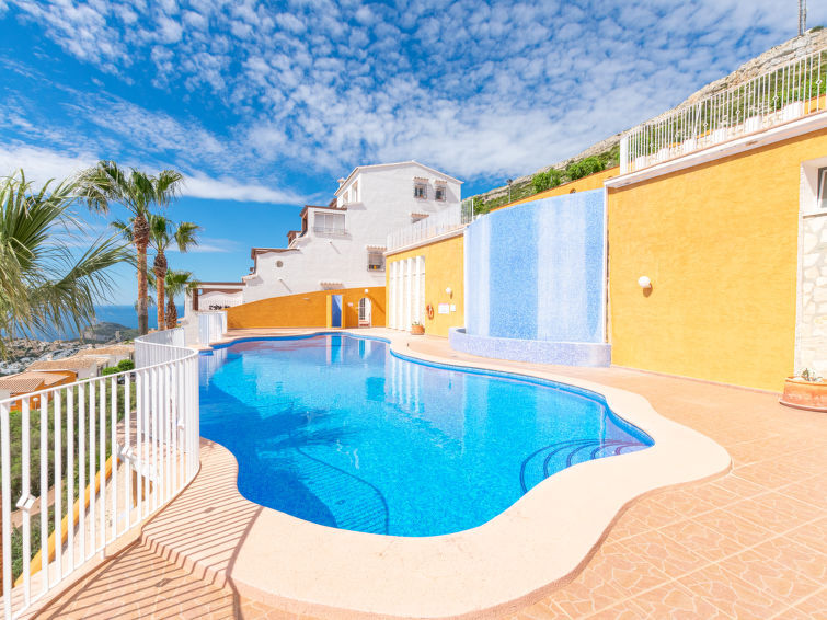 Benitachell: Vakantiepark "Vista Mar", bouwjaar 2008. In de wijk Cumbre del Sol, rustige, zonnige, verhoogde ligging, 3 km van zee. Voor medegebruik: 2 zwembaden (seizoensgebonden beschikbaarheid: 01.Mrt. - 30.Nov.) met trap. Kinderzwembad, buitendouche, openbare parkeerplaatsen in de straat. Supermarkt 1 km, winkelcentrum 2 km, restaurant 2 km, bushalte 6 km, zandstrand "Arenal" 7 km, baai 3 km. Auto noodzakelijk, geen lift. De eigenaar accepteert geen jeugdgroepen.