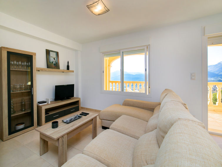 Urb. La Almazara: Gezellige twee onder één kap woning "Residencial Bellavista". 2 km van het centrum van Jalón/Xaló, 9 km van het centrum van Benissa, geïsoleerde, rustige, zonnige ligging tegen een helling, 16 km van zee, 16 km van het strand. Voor medegebruik: tuin met gazon, openluchtzwembad hoekig (seizoensgebonden beschikbaarheid: 01.Jan. - 31.Dec.) met trap. Buitendouche, parkeerplaats bij het huis. Supermarkt 1 km, restaurant 2 km, bar 2 km, bushalte 2.5 km, zandstrand "de Calpe" 16 km. Attracties in de buurt: Aqualandia, Terra Mítica, Mundomar, Terra Natura, Benidorm Palace (Benidorm), Fonts de l'Algar (Callosa d'en Sarriá).