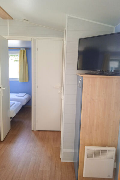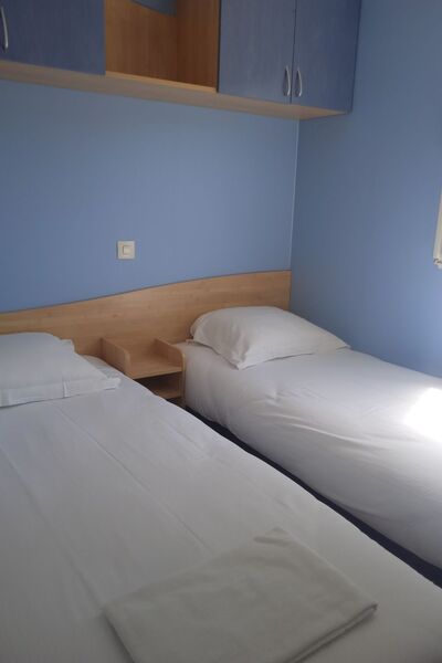 3-kamers mobilhome 25 m2. Doelmatig ingericht: woon-/slaapkamer met 1 slaapplaats en TV (Flatscreen TV). 1 kamer met 1 2-pers bed (1 x 140 cm, lengte 190 cm). 1 kamer met 2 bedden (80 cm, lengte 190 cm). Kookhoek (4-pits kookplaat, broodrooster, waterkoker, magnetron, elektrische koffiemachine). Douche, aparte WC. Elektrische verwarming. Terras. Terrasmeubelen. Maximaal 2 huisdieren/honden toegestaan. Rookmelders. Aanbod door een commerciële eigenaar volgens art. 155, IV, CGI