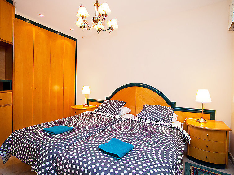 Appartement 4-kamers 150 m2 op de 5e verdieping. Licht, mooi en gezellig ingericht: woon-/eetkamer met Sat-TV, internationale TV-zenders en air-conditioning. 1 kamer met 1 2-pers bed (180 cm, lengte 200 cm), douche/WC en air-conditioning. Uitgang naar de loggia. 1 kamer met 2 bedden (90 cm, lengte 200 cm). 1 kleine kamer met 1 bed (90 cm, lengte 200 cm). Salon. Keuken (4-pits kookplaat, oven, afwasmachine, magnetron, diepvriezer, elektrische koffiemachine) met eettafel. Douche/WC, hydromassage douche. Verwarming. Uitzicht op de plaats. Ter beschikking: wasmachine, droger, kluis, strijkijzer, kinderbed tot 3 jaar (extra), haardroger. Internet (WiFi, gratis). Geschikt voor families. Grote dressoir in de grote slaapkamer. In de grote kamer kunnen de bedden gescheiden worden (op aanvraag). HUTB-005662 // Reg. Nr.: ESFCTU00000806000004706300000000000000000HUTB-0056621