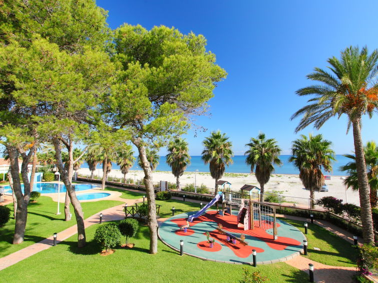 Moderne, gezellig, comfortabel flatgebouw "Marina Azul", bouwjaar 2010. In de wijk Playa Almadrava, 2 km van het centrum van Els Poblets, 9 km van het centrum van Dénia, 20 m van zee, directe toegang tot het strand. Voor medegebruik: tuin met gazon en bomen, openluchtzwembad (20 x 14 m, 110 - 210 cm diepte, seizoensgebonden beschikbaarheid: 01.Jan. - 31.Dec. openingstijden zwembad: 09:00-15:00 en 17:30-00:00) met trap. Kinderzwembad, buitendouche, kinderspeelplaats (glijbaan). In het huis: lift. Parkeerplaats, gemeenschappelijke garage. Supermarkt 300 m, restaurant 50 m, bar, bushalte 100 m, zandstrand 150 m, stenenstrand 20 m. Jachthaven 10 km, golfterrein (18 holes) 8 km. Groepen jongeren uitsluitend op aanvraag.