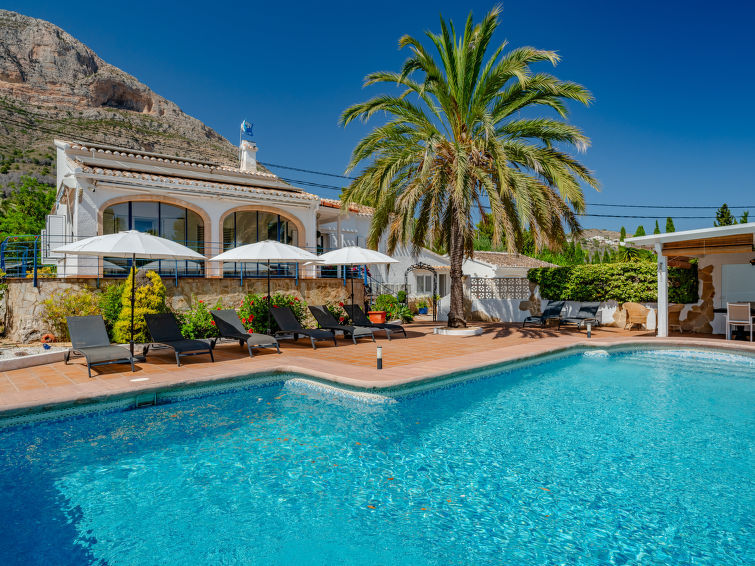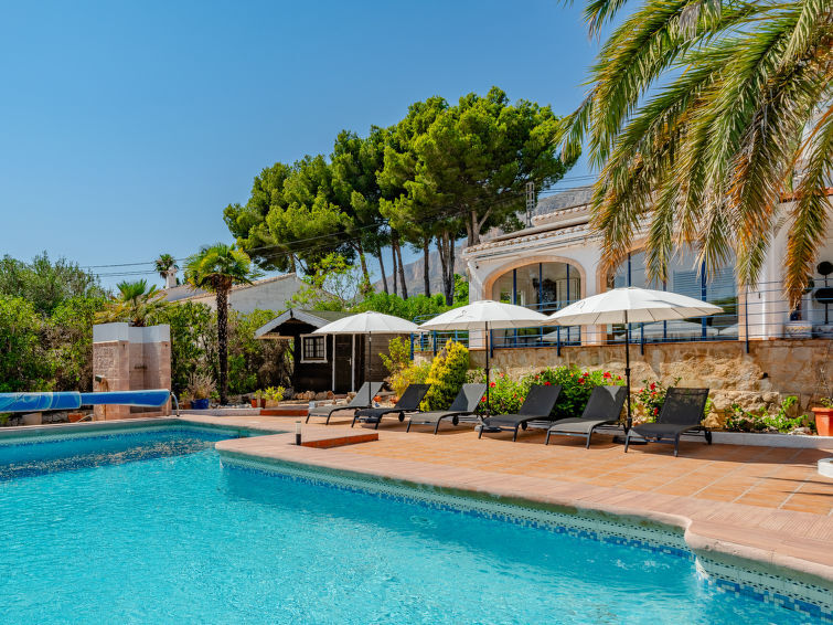 Zeer groot, mooi huis "Baloma Plus". In de wijk Montgo Javea, in de plaats, 3 km van het centrum van Javea, rustige, zonnige ligging, 5 km van zee, 5 km van het strand. Voor alleengebruik: groot, mooie, verzorgde tuin (omheind) met gazon en bomen, openluchtzwembad hoekig (5 x 11 m, 40 - 220 cm diepte, seizoensgebonden beschikbaarheid: 01.Jan. - 31.Dec.) met trap en zout-elektrolyse. Buitendouche, tuinmeubelen, grill, parkeerplaats. Carport. Supermarkt 2 km, restaurant, café 700 m, bushalte 650 m, zandstrand "El Arenal" 6 km, stenenstrand "Playa de la Grava" 5 km. Jachthaven 6 km, surfschool 6 km, zeilschool 6 km, tennis 5.5 km. De eigenaar accepteert geen jeugdgroepen.